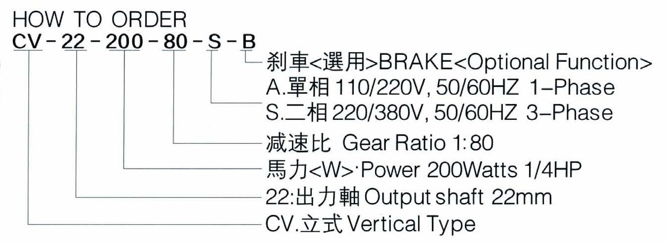 CV 立式減速電機尺寸表: 點擊對應的下載鏈接即可下載該尺寸圖 (備注:A1:三相電機尺寸,A2:單相電機尺寸)